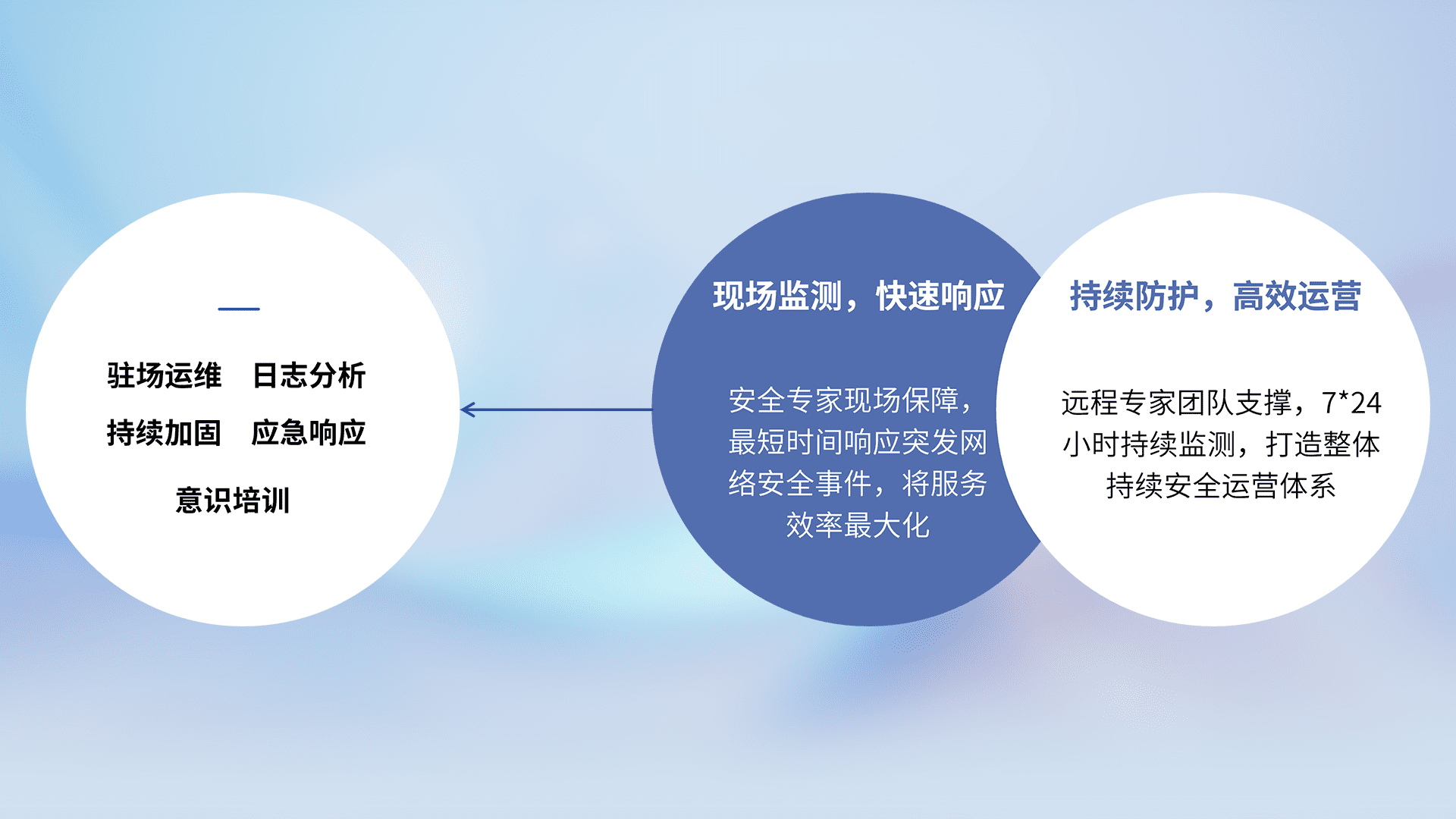 7X24小时持续监测安全事件,保持安全策略有效性,降低资产脆弱性风险,,,精准拦截黑客攻击,,,,减少被黑客利用的机会,,,,第一时间遏制,,,,降低损失。。